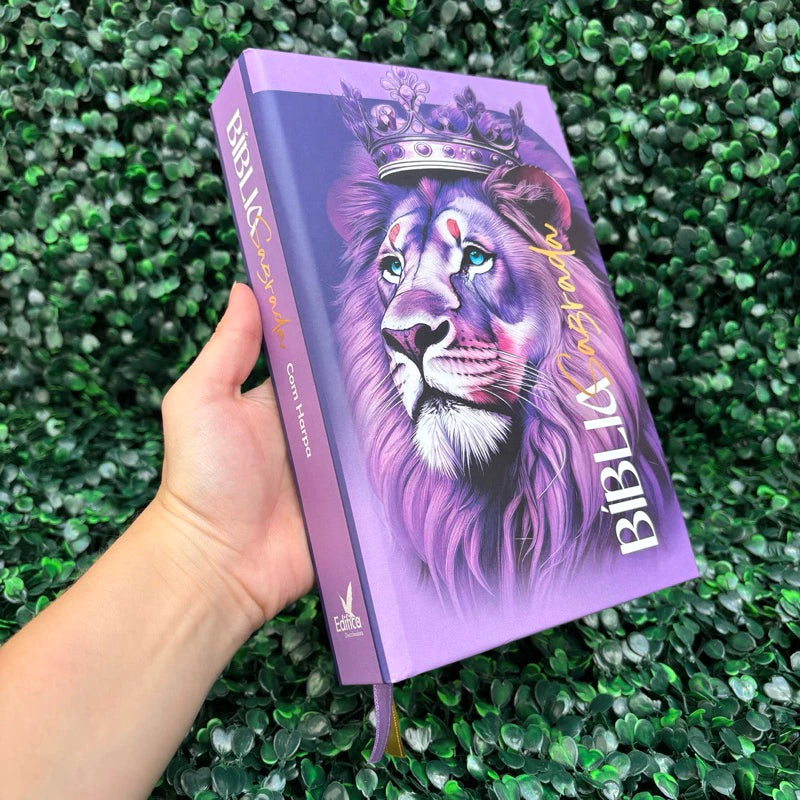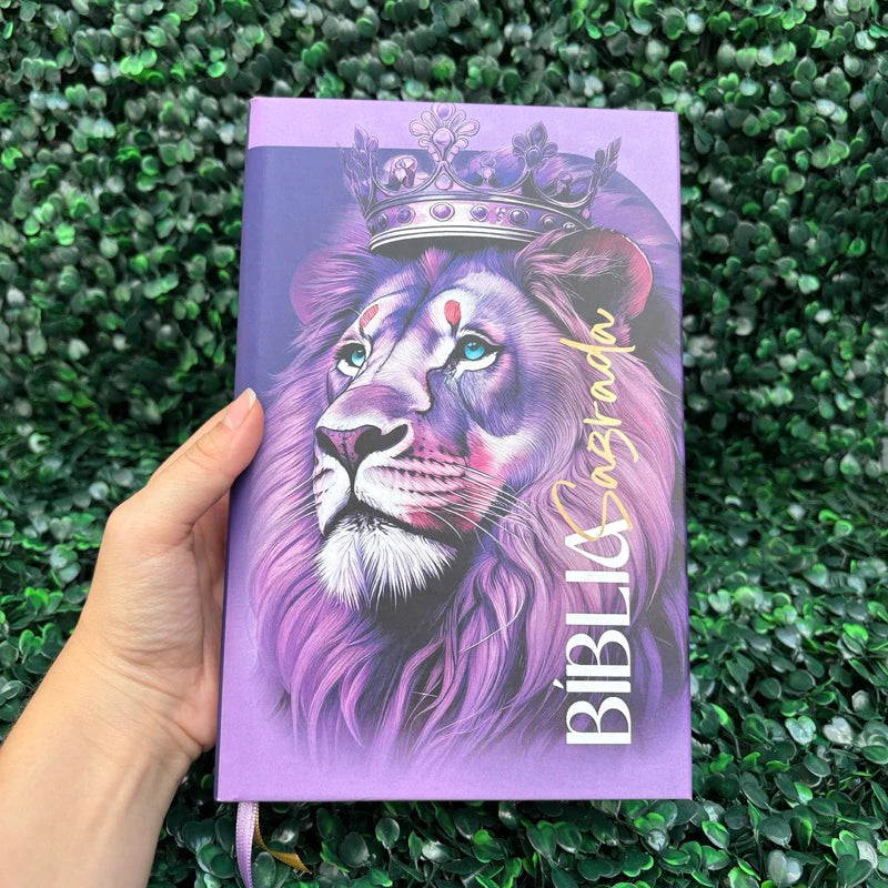 Bíblia Sagrada Feminina Leão Roxa Com Harpa e Índice