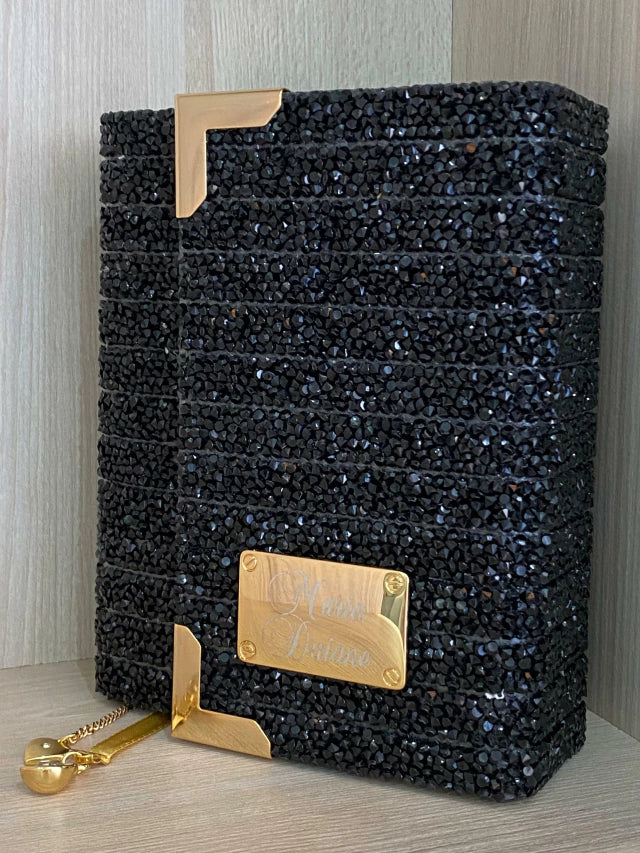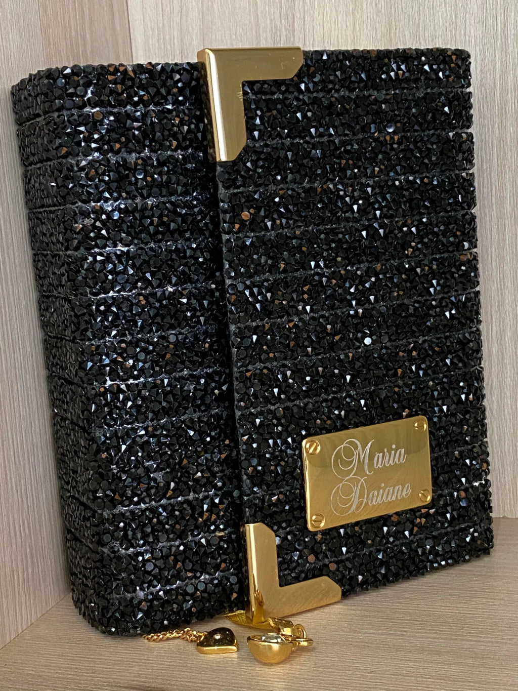 Descubra a união perfeita entre tradição e sofisticação com nosso Binário Carteira Black Diamond. Uma bela Bíblia com Hinário, adornada com pedrarias em formatos de diamante, capa fixa e cantoneiras espelhadas que resistem ao tempo, o fecho proporciona maior cuidado e durabilidade das páginas. Personalizada com seu nome, esta peça exclusiva vem com dois marcadores de página.